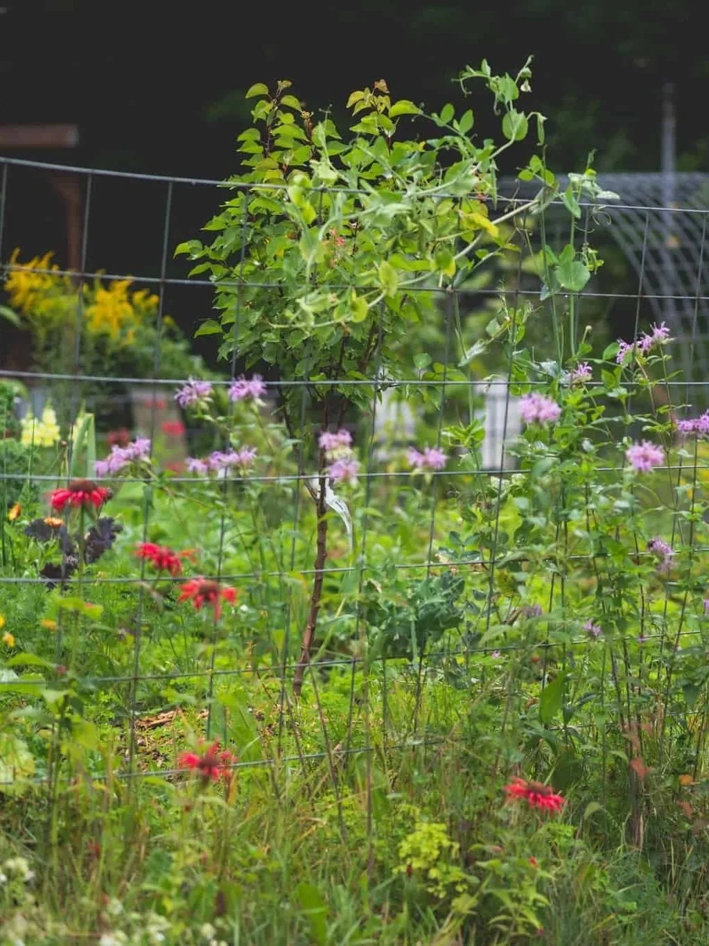 Perennial plants, bushes, and trees come back yearly (some plants and trees only offer fruit every 2 years), and we can eat the greens, flowers, or fruit on them. We are slowly building our fruit tree guilds, hedgerows, and garden spaces to include as many food options as possible while still supporting our native ecosystem.